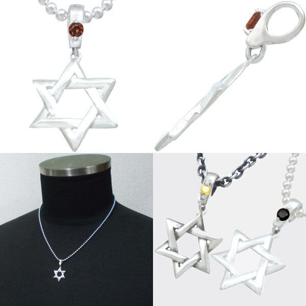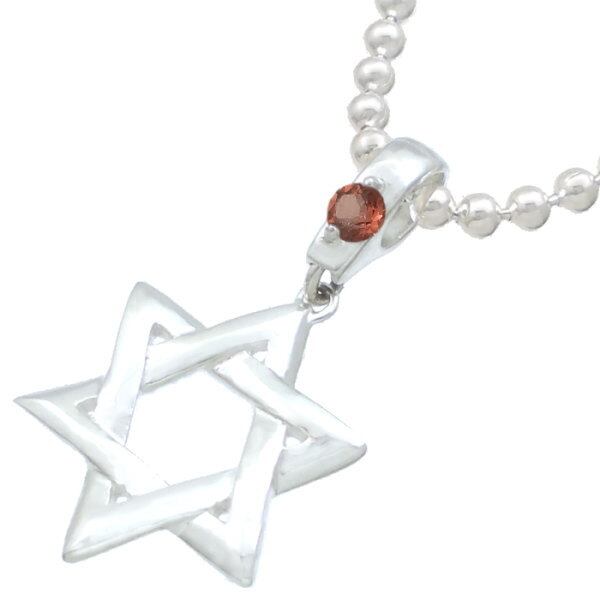 (1月)ガーネット ホワイト ヘキサグラム 六芒星 シルバー ペンダントトップ 誕生石*BP-1078