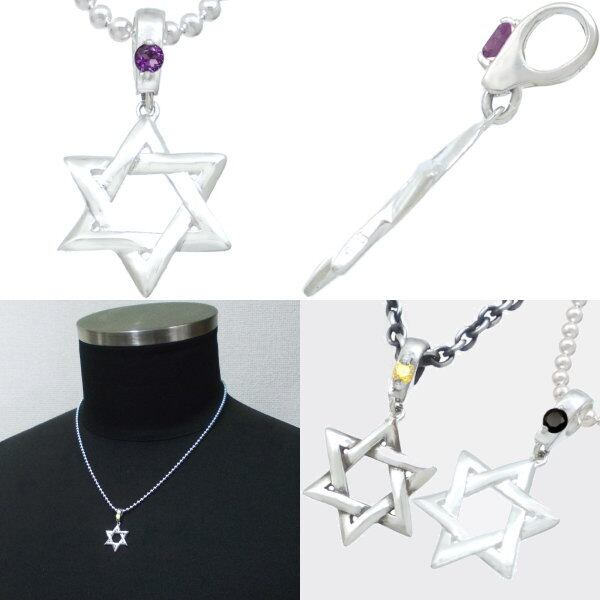 (2月)アメジスト ホワイト ヘキサグラム 六芒星 シルバー ペンダントトップ 誕生石*BP-1078
