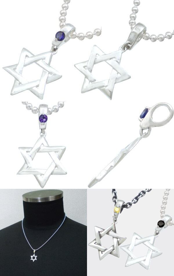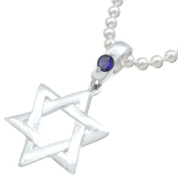 (9月)サファイア ホワイト ヘキサグラム 六芒星 シルバー ペンダントトップ 誕生石*BP-1078