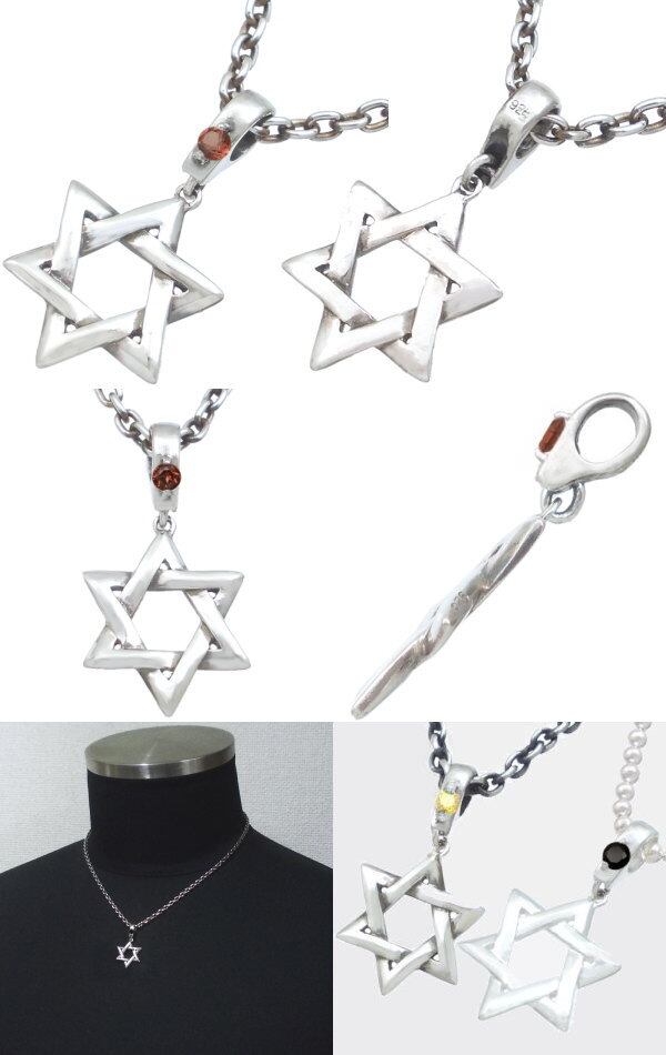 (1月)ガーネットブラック ヘキサグラム 六芒星 シルバー ペンダントトップ 誕生石*BP-1079