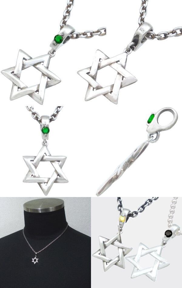 ダビデの星ヘキサグラムをナチュラルな立体感の山型に仕上げたペンダントトップ。シンプルな3種のリバーシブルタイプに続きバースデーストーンとのコンビが登場。