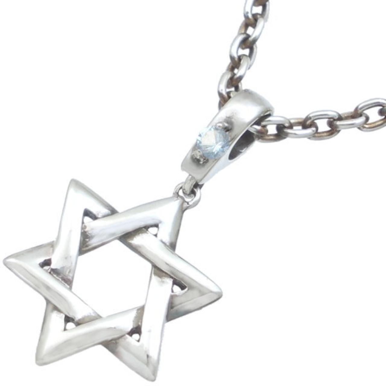ダビデの星ヘキサグラムをナチュラルな立体感の山型に仕上げたペンダントトップ。シンプルな3種のリバーシブルタイプに続きバースデーストーンとのコンビが登場。