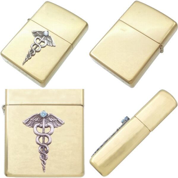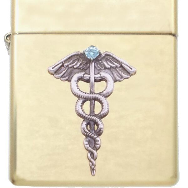 ★ギリシャ神話の使者ヘルメスの杖カドゥケウスとバースデーストーンのブラスボディジッポ。