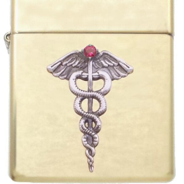 ★ギリシャ神話の使者ヘルメスの杖カドゥケウスとバースデーストーンのブラスボディジッポ。