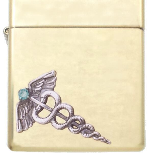 ★ギリシャ神話の使者ヘルメスの杖カドゥケウスとバースデーストーンのブラスボディジッポ。