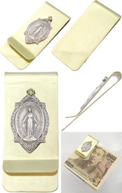 (8月)ペリドット フレーム マリアメダイ ブラスマネークリップ 誕生石*BM-1049