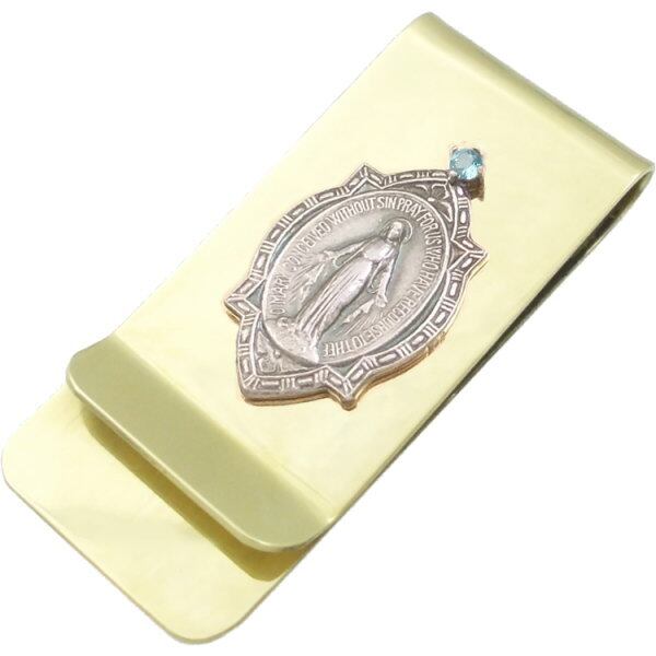 (11月)ブルートパーズ フレーム マリアメダイ ブラスマネークリップ 誕生石*BM-1049