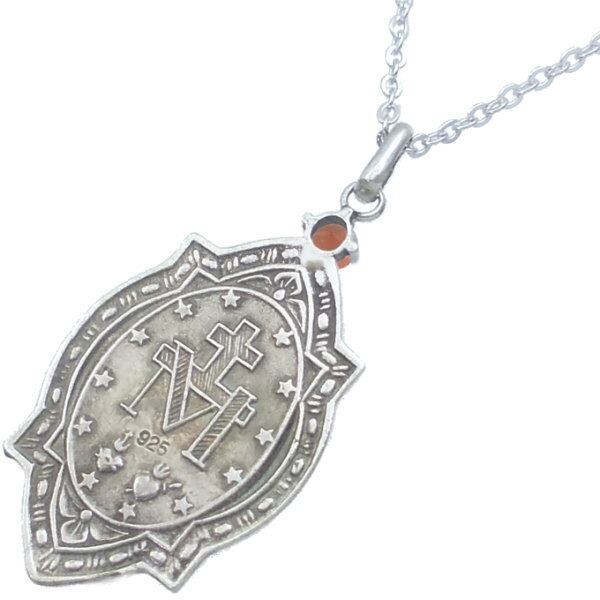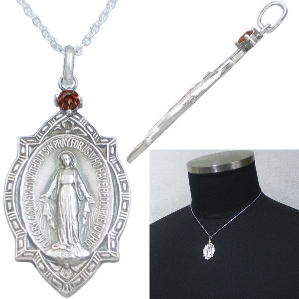 (1月)ガーネット フレーム マリアメダイ シルバーペンダントネックレス 誕生石*BP-1080