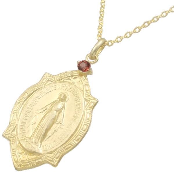 (1月)ガーネット ゴールドコート フレーム マリアメダイ シルバーペンダントネックレス 誕生石*BP-1081