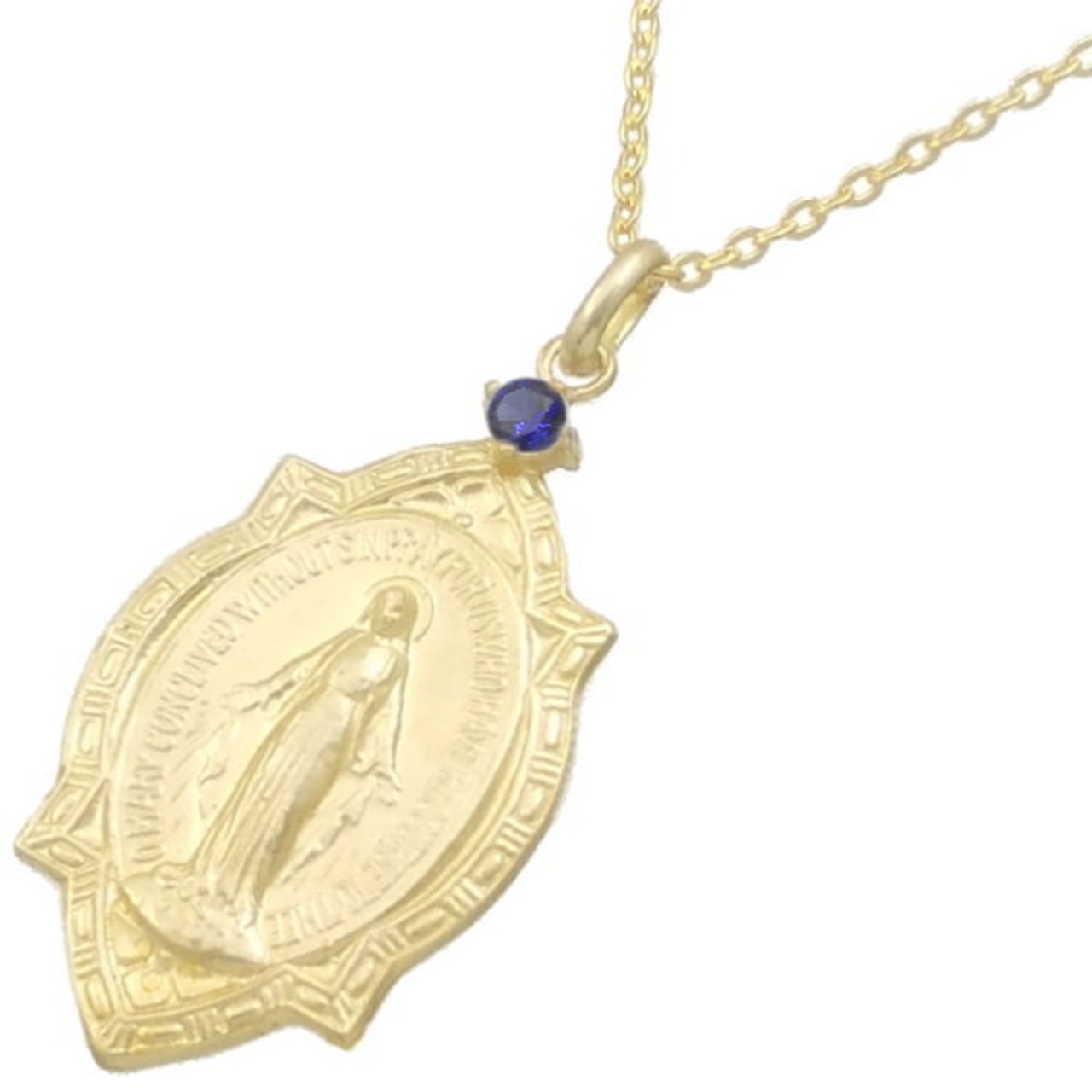 (9月)サファイア ゴールドコート フレーム マリアメダイ シルバーペンダントネックレス 誕生石*BP-1081