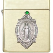 楕円のマリアメダイをゴシックフレームで囲むアンティークな趣きで誕生石を合わせたお守り代わりにもおススメ。