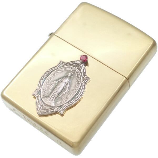(7月)ルビー フレーム マリアメダイ ブラスジッポ 誕生石*BZ-1090