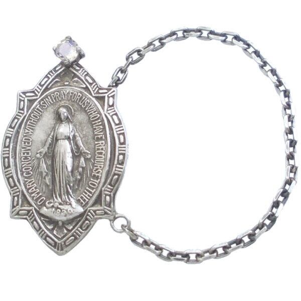 楕円のマリアメダイをゴシックフレームで囲むアンティークな趣きで誕生石を合わせたお守り代わりにもおススメ。