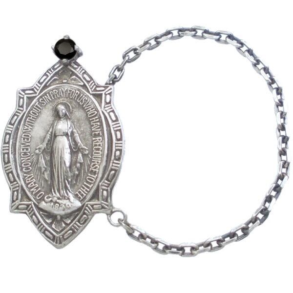 楕円のマリアメダイをゴシックフレームで囲むアンティークな趣きで誕生石を合わせたお守り代わりにもおススメ。