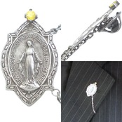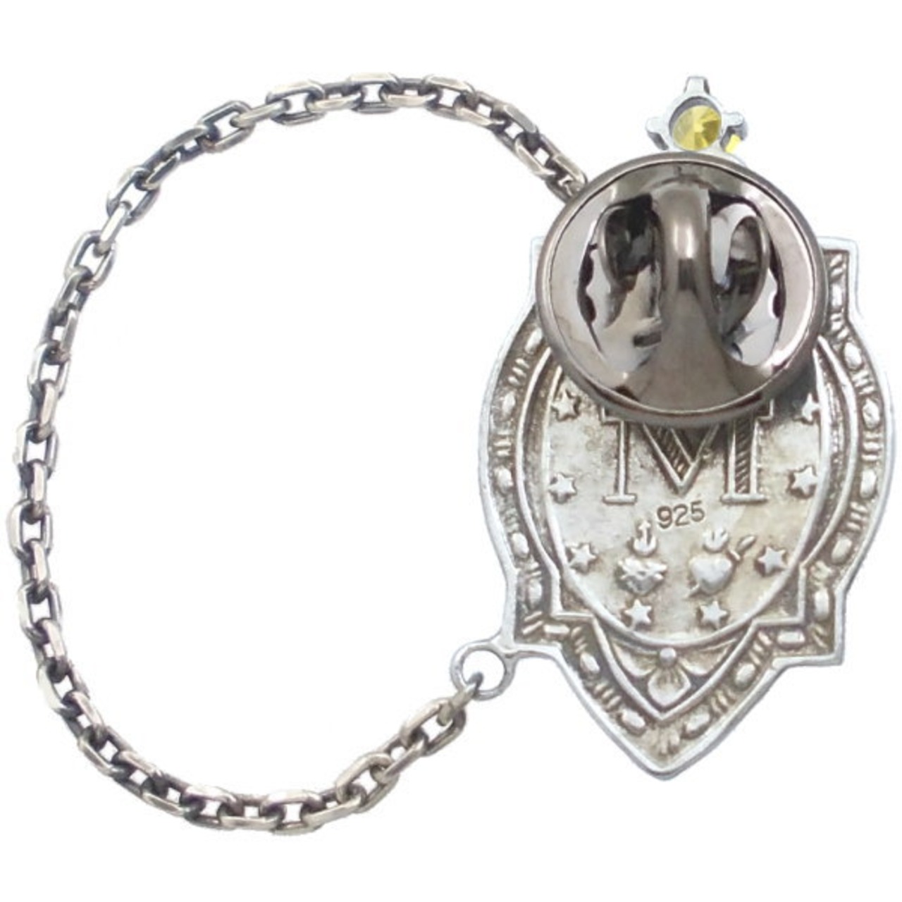 イエローCZ フレーム マリア チェーン シルバーピンバッジ ピンズ*BK-1137