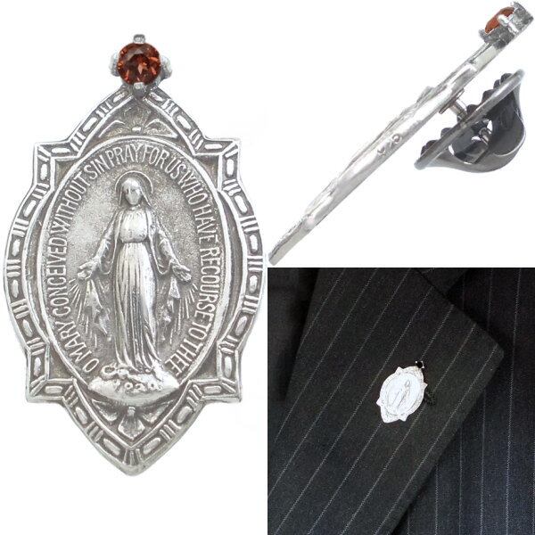 (1月)ガーネット フレーム マリア シルバーピンバッジ ピンズ 誕生石*BK-1138