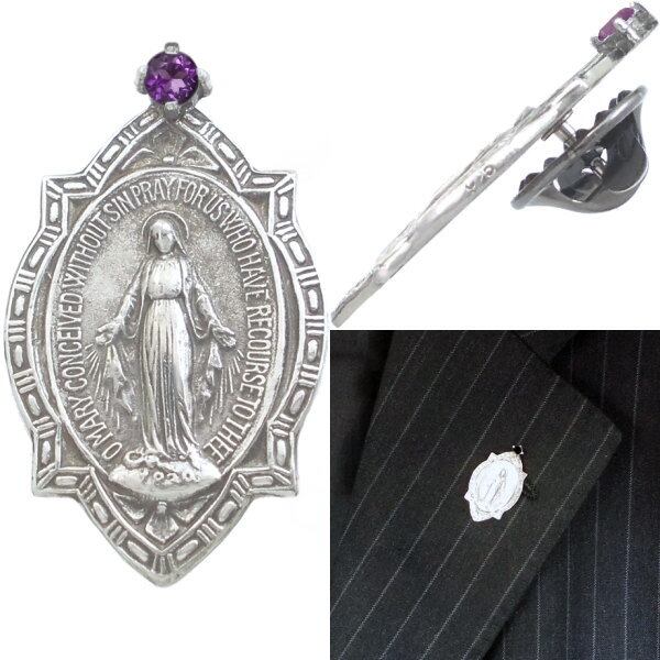 (2月)アメジスト フレーム マリア シルバーピンバッジ ピンズ 誕生石*BK-1138 | シルバーアクセサリーバズショット