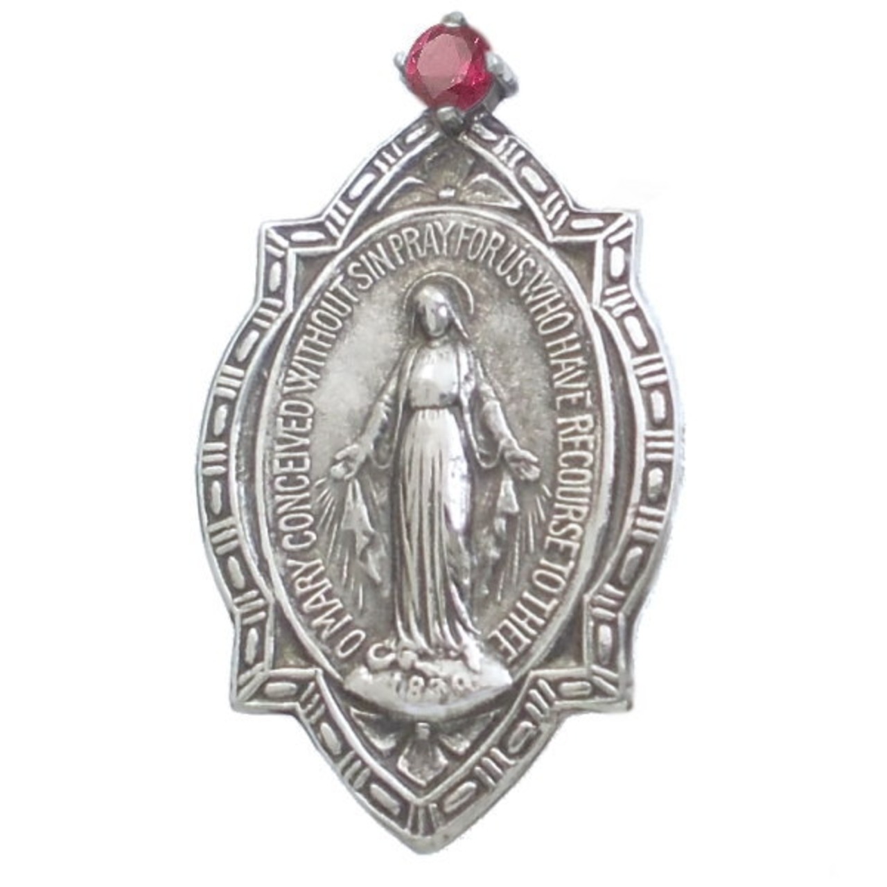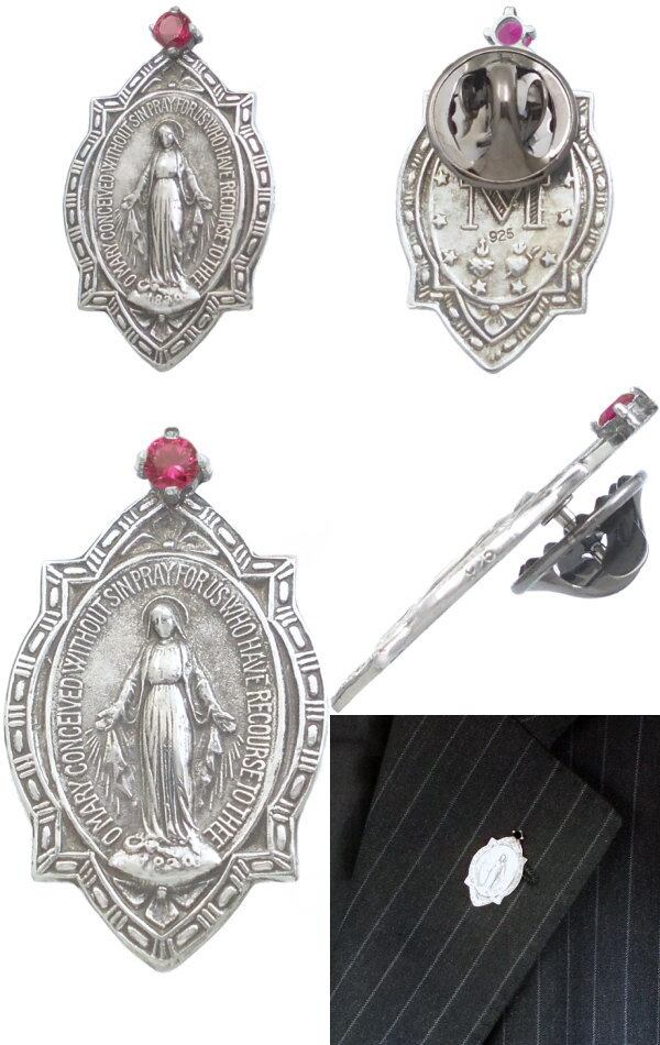 (7月)ルビー フレーム マリア シルバーピンバッジ ピンズ 誕生石*BK-1138