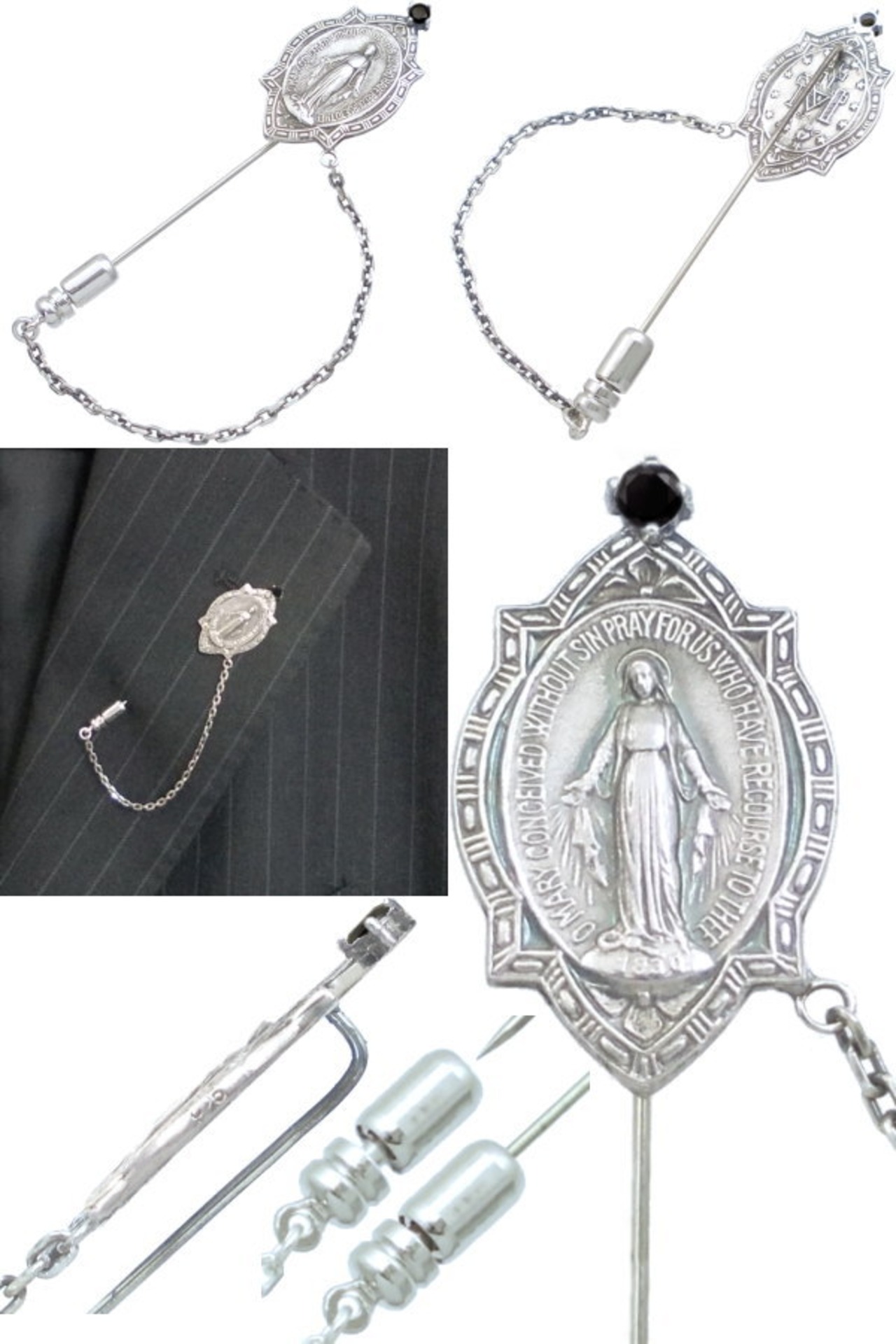 ブラックCZ フレーム マリア チェーン シルバーラペルピン*BK-1235