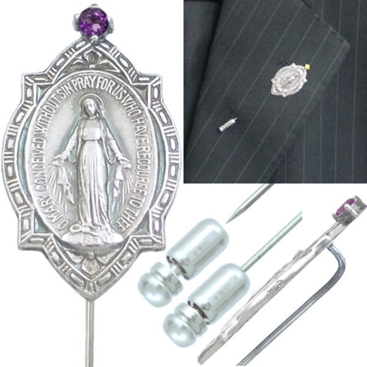 (2月)アメジスト フレーム マリア シルバーラペルピン 誕生石*BK-1236