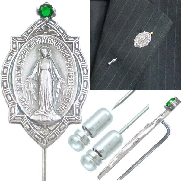 (5月)エメラルドグラス フレーム マリア シルバーラペルピン 誕生石*BK-1236