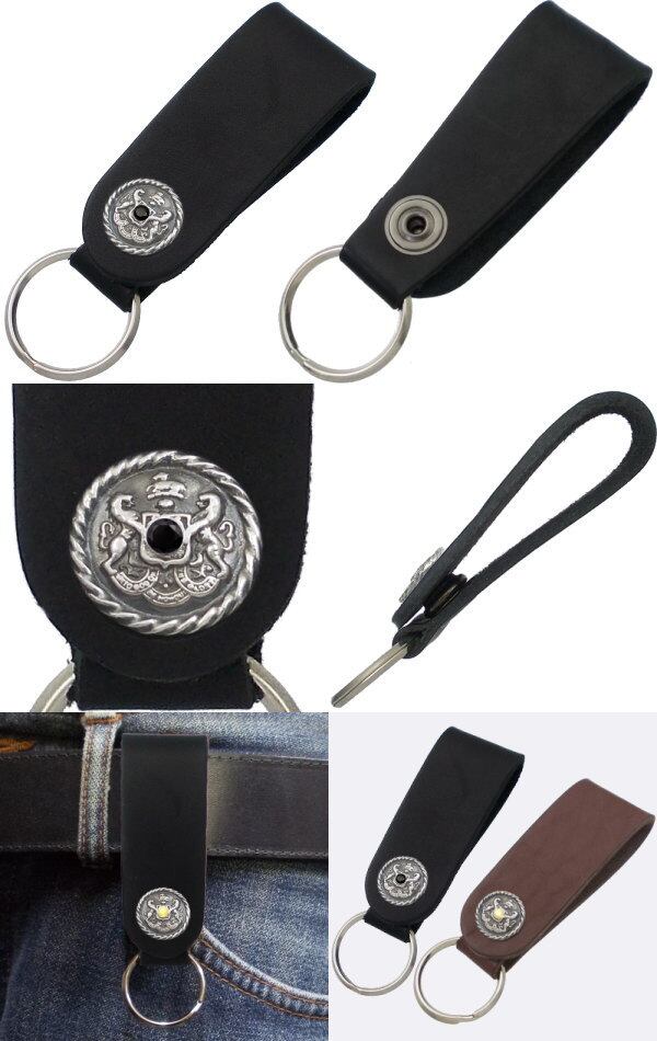 ブラックCZ アンティーク エンブレム ブラックレザー キーホルダー*BH-033