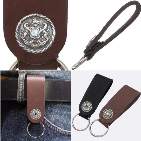 ★クラシックなヨーロッパのエンブレムデザインのサドルレザー製キーホルダー。