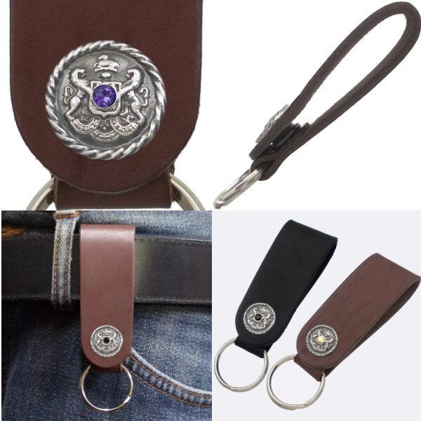 誕生石が選べるのはモチロンのことブラック、イエローのジルコニアも選べ、ブラックとブラウンレザーとの多彩な組み合わせで年齢を選ばずお勧めできるスタンダードなキーホルダーとして日常使いにオススメです。