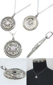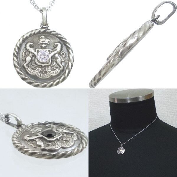 (4月)ジルコニア アンティーク エンブレム シルバーペンダントネックレス 誕生石*BP-1082