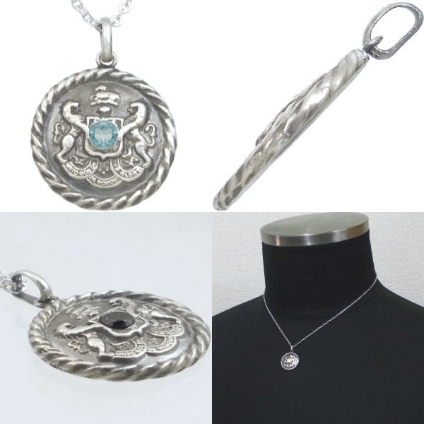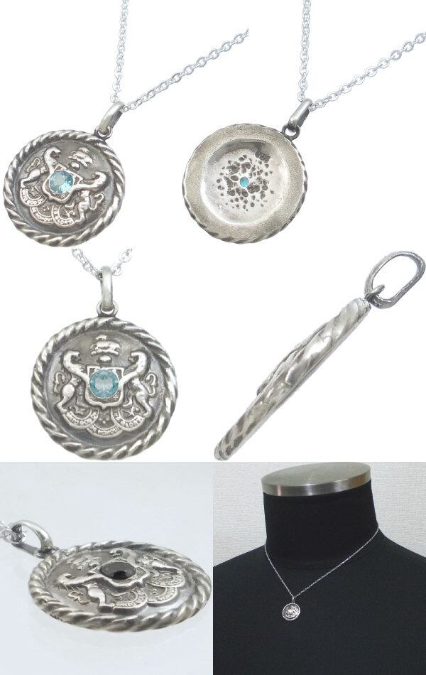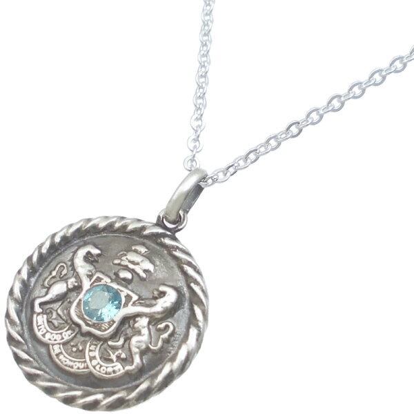 (11月)ブルートパーズ アンティーク エンブレム シルバーペンダントネックレス 誕生石*BP-1082