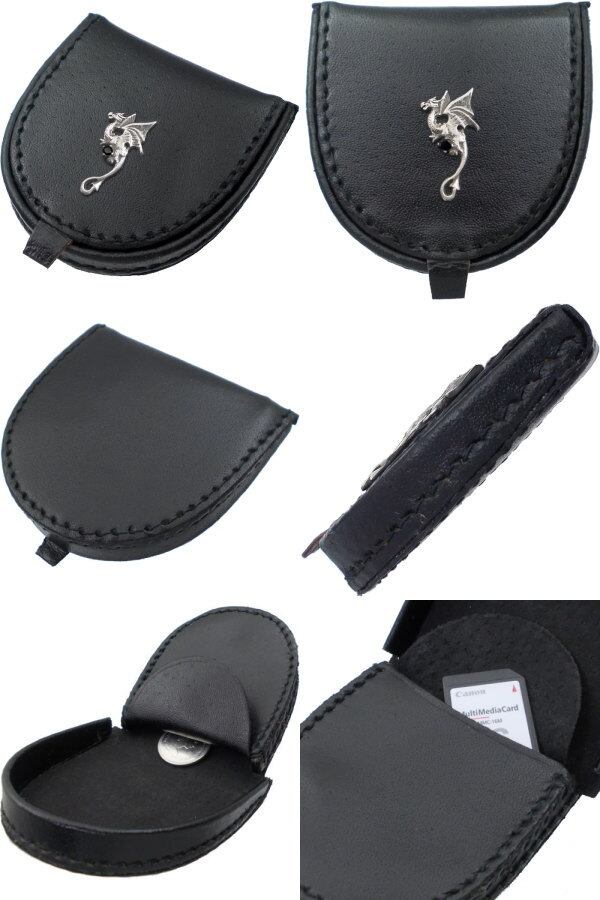 ブラックCZ ユーロ ドラゴン レザーコインケース△キュービックジルコニア使用*BW-1013
