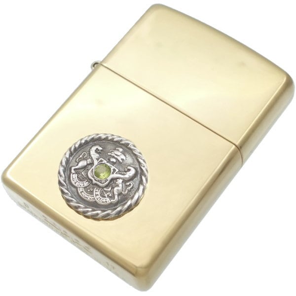 (8月)ペリドット アンティーク エンブレム センター ブラスジッポ 誕生石*BZ-1092