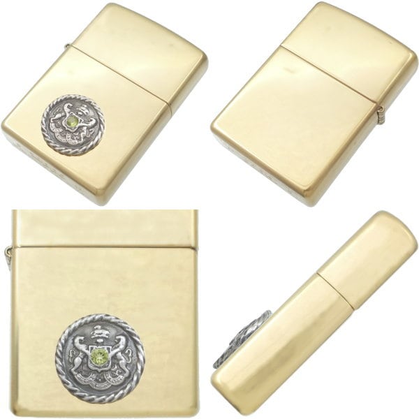 ★クラシックなヨーロッパのエンブレムデザインとバースデーストーンのブラスボディジッポ。
