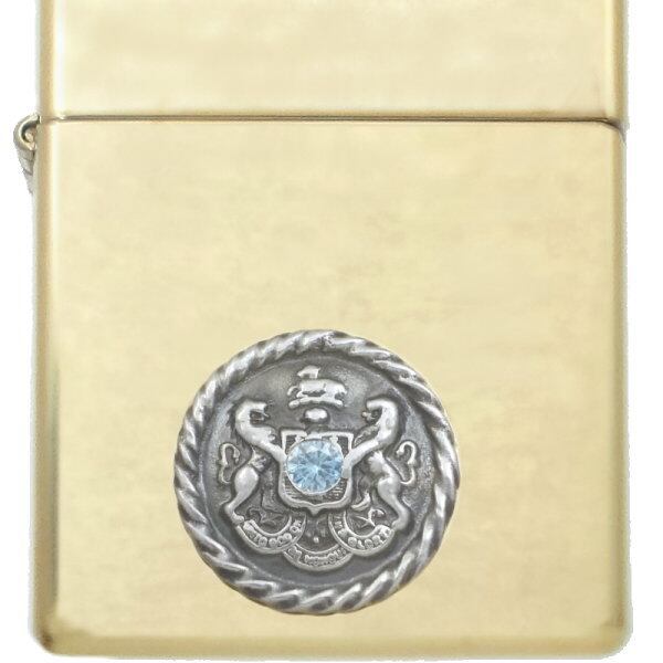 ★クラシックなヨーロッパのエンブレムデザインとバースデーストーンのブラスボディジッポ。
