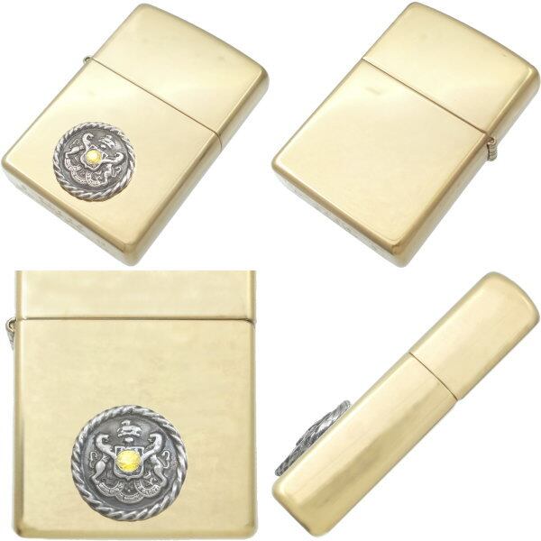 イエローCZ アンティーク エンブレム センター ブラスジッポ*BZ-1092
