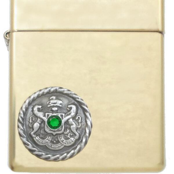 ★クラシックなヨーロッパのエンブレムデザインとバースデーストーンのブラスボディジッポ。