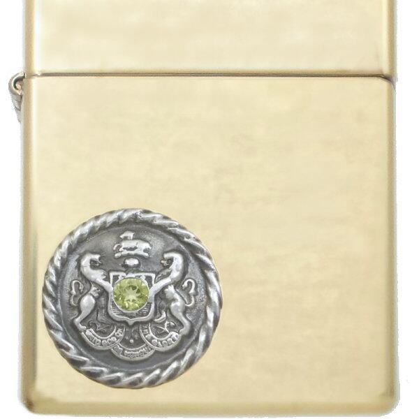 (8月)ペリドット アンティーク エンブレム ブラスジッポ 誕生石*BZ-1093