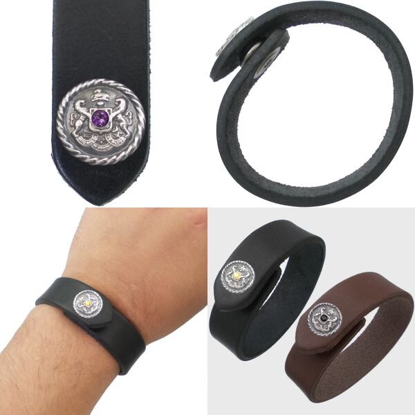 (2月)アメジスト アンティーク エンブレム ブラックレザーブレスレット 誕生石 誕生石*BB-1037