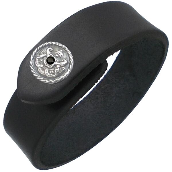 ブラックCZ アンティーク エンブレム ブラックレザーブレスレット 誕生石*BB-1037