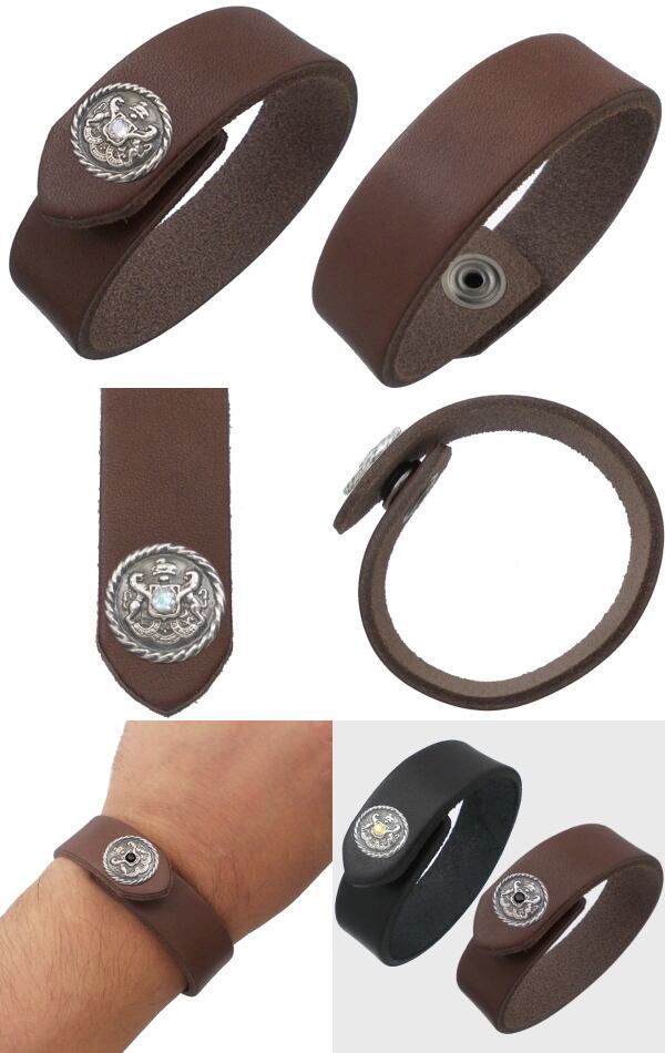 ★クラシックなヨーロッパのエンブレムデザインのサドルレザーブレス。
