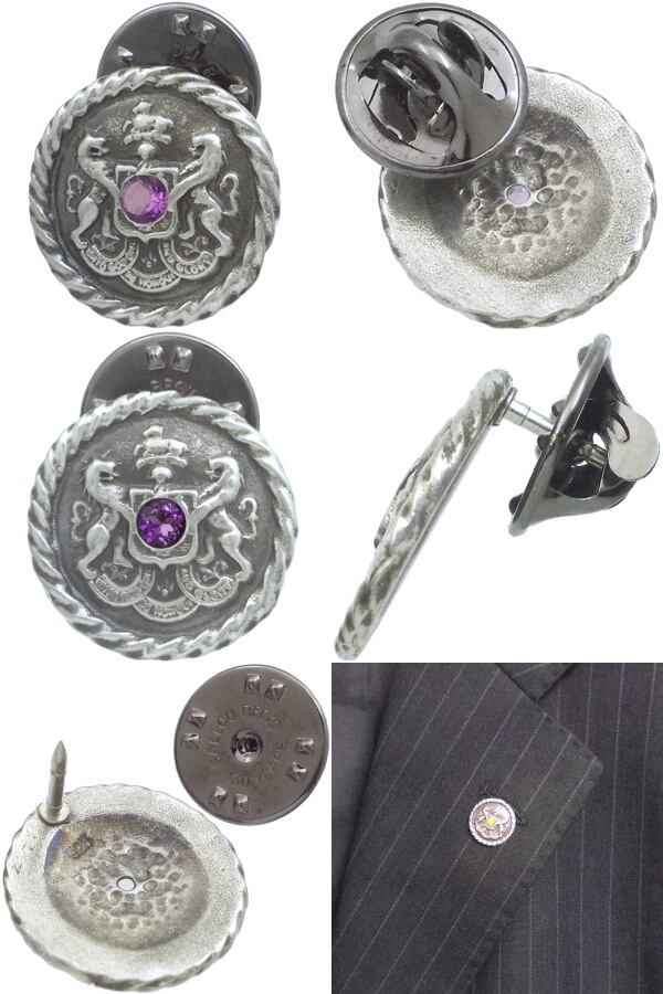 (2月)アメジスト アンティーク エンブレム シルバーピンバッジ ピンズ 誕生石*BK-1139 | シルバーアクセサリーバズショット