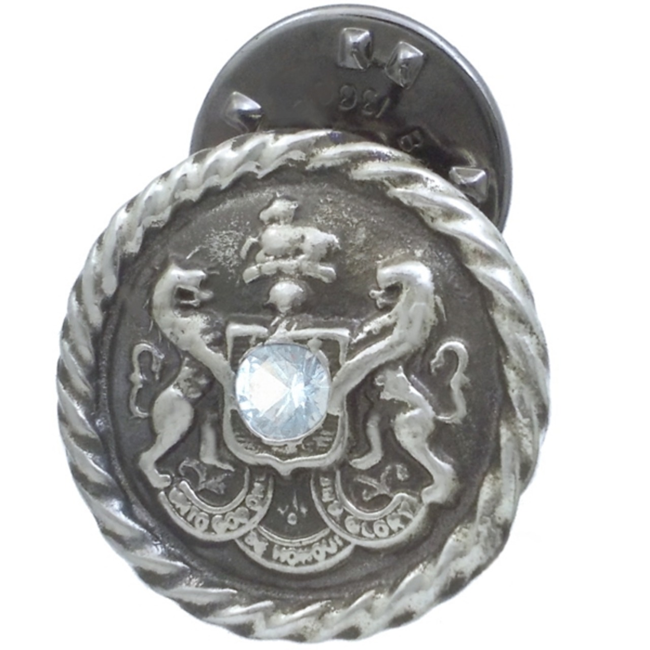 (3月)アクアマリン アンティーク エンブレム シルバーピンバッジ ピンズ 誕生石*BK-1139