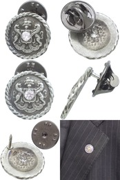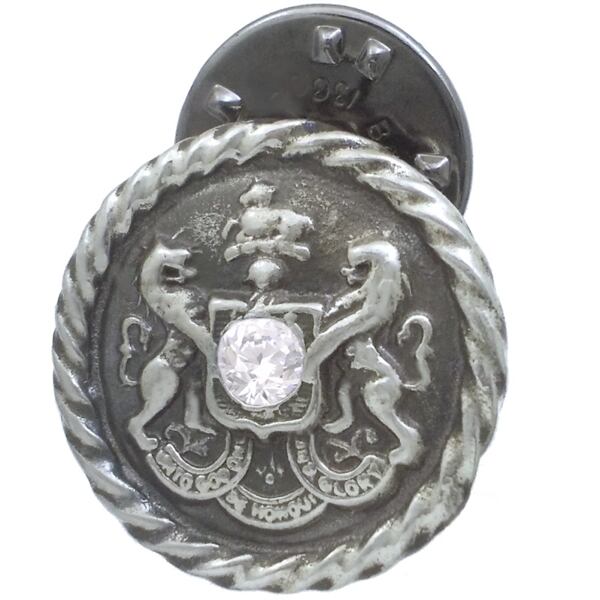 (4月)ジルコニア アンティーク エンブレム シルバーピンバッジ ピンズ 誕生石*BK-1139