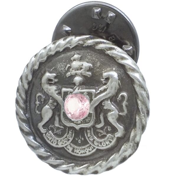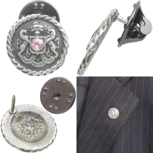(10月)ピンクトルマリン アンティーク エンブレム シルバーピンバッジ ピンズ 誕生石*BK-1139
