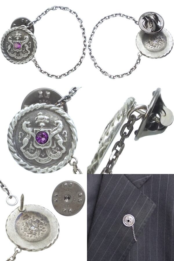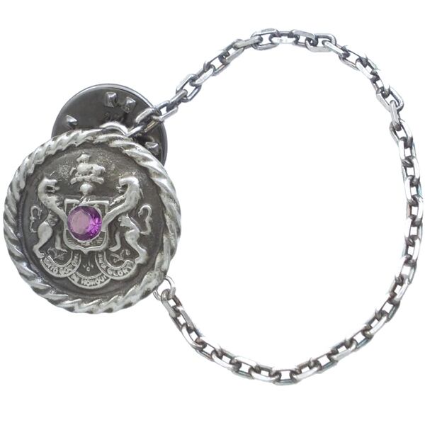 (2月)アメジスト アンティーク エンブレム チェーン シルバーピンバッジ ピンズ 誕生石*BK-1140 | シルバーアクセサリーバズショット
