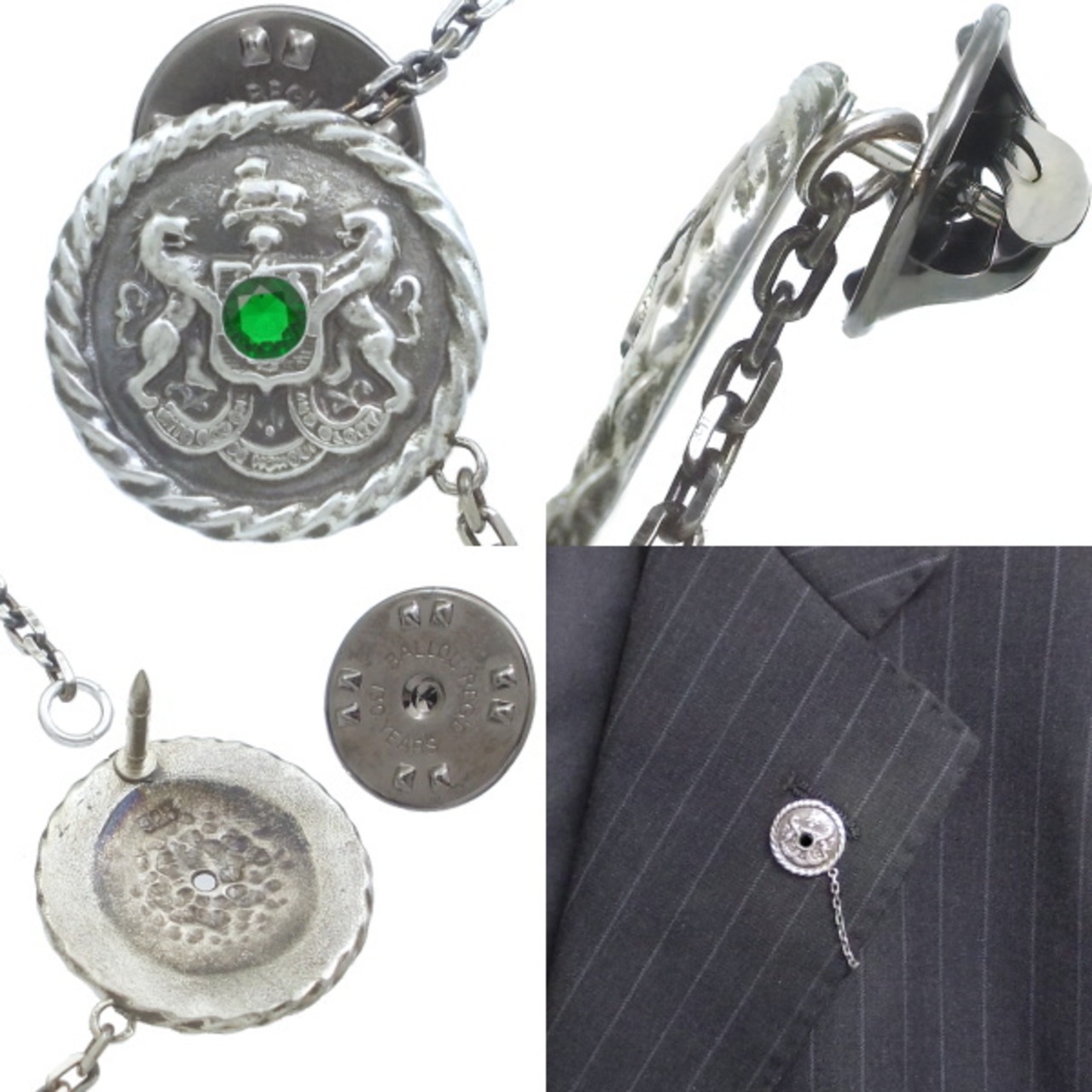(5月)エメラルドグラス アンティーク エンブレム チェーン シルバーピンバッジ ピンズ 誕生石*BK-1140
