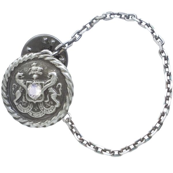 (6月)ブルームーンストーン アンティーク エンブレム チェーン シルバーピンバッジ ピンズ 誕生石*BK-1140