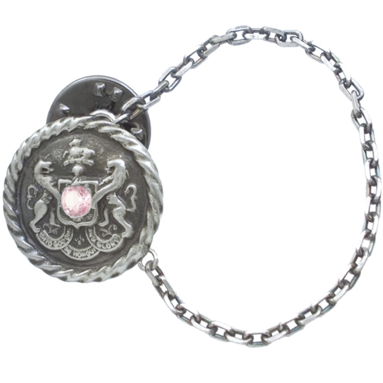(10月)ピンクトルマリン アンティーク エンブレム チェーン シルバーピンバッジ ピンズ 誕生石*BK-1140