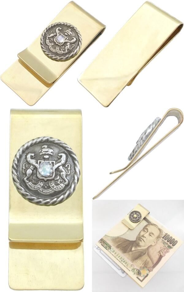 (6月)ブルームーンストーン アンティーク エンブレム スリム ブラス マネークリップ 誕生石*BM-1051