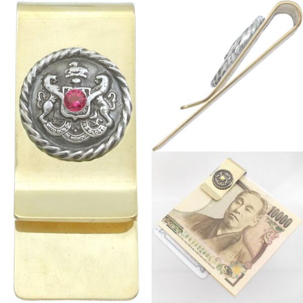(7月)ルビー アンティーク エンブレム スリム ブラス マネークリップ 誕生石*BM-1051